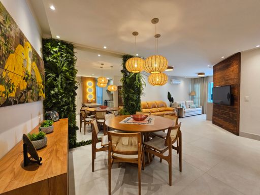- 4 dormitórios, sendo 3 suítes - Sala de estar e jantar integradas - Cozinha americana - Lavabo - Área de serviço - Varanda gourmet com churrasqueira - Fechamento em vidro - Ambientes climatizados Diferenciais e Lazer do Condomínio: Piscina adulto Piscina infantil Quadra de tênis Salão de festas Salão de jogos Sauna seca Área verde Maquina de gelo Serviços de praia. À Disponibilidade e Valores dos Imóveis anunciados podem sofrer alterações a qualquer momento, sem aviso prévio.