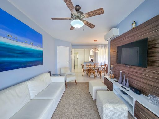 - 2 suítes - Cozinha americana integrada ao living com 2 ambientes - Banheiro social - Varanda gourmet com churrasqueira - Varanda com fechamento em tela de proteção - Ambientes climatizados Diferenciais e Lazer do Condomínio: Clube compartilhado com (2 quadras de tênis, quadra poliesportiva, quadra de areia, pista de caminhada, playground) Piscina adulto com deck Piscina infantil Salão de Jogos e TV Salão de Festas Playground Sauna com Sala de Repouso Academia Área Verde/Jardim Sanitários Portaria Serviço de praia. À Disponibilidade e Valores dos Imóveis anunciados podem sofrer alterações a qualquer momento, sem aviso prévio.