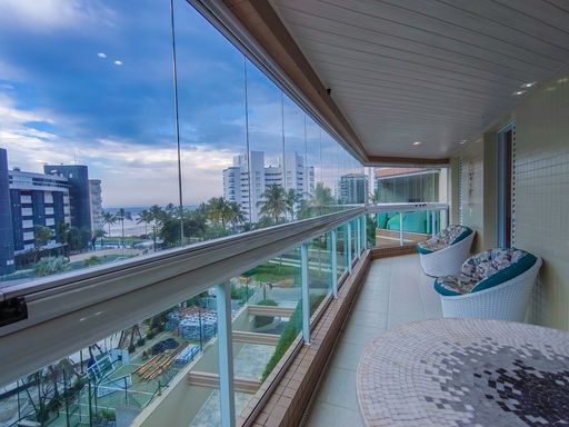 - 4 suítes - Living com dois ambientes - Cozinha equipada, integrada a varanda gourmet - Banheiro social - Área e dormitório de serviço - Ampla Varanda gourmet integrada a sala de estar, com vista para o mar - Varanda com fechamento em vidros - Ambientes climatizados - 3 vagas de garagem Diferenciais do Condomínio: Piscinas adulto e infantil com borda infinita Solarium e acesso direto à praia Playground e kids place Salão de festas e espaço gourmet externo Sala de jogos Sala de descanso com saunas seca e úmida Vestiários para piscina Área fitness e quadra recreativa Hall social elegante Garagem com acessos pelo térreo e subsolo Portaria com controle de entrada e saída À Disponibilidade e Valores dos Imóveis anunciados podem sofrer alterações a qualquer momento, sem aviso prévio.