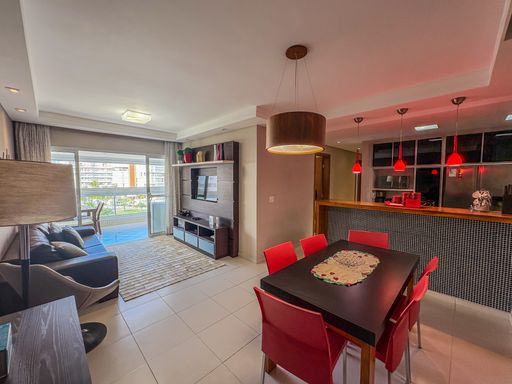 - 3 suítes - Living com dois ambientes - Cozinha equipada - Banheiro social - Área de serviço - Varanda gourmet equipada com churrasqueira e fechamento em tela de proteção - Ambientes climatizados - 2 vagas de garagem Diferenciais e Lazer do Condomínio: Clube compartilhado com (2 Quadras de Tênis, Quadra poliesportiva, Quadra de areia, Pista de caminhada, Playground) Piscina adulto com deck Piscina infantil Salão de Jogos e TV Salão de Festas Playground Sauna com Sala de Repouso Academia Área Verde/Jardim Sanitários Portaria Serviço de praia Depósito individual na garagem. À Disponibilidade e Valores dos Imóveis anunciados podem sofrer alterações a qualquer momento, sem aviso prévio.