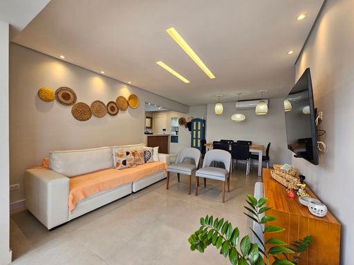 - 3 dormitórios, sendo 1 suíte - Living com dois ambientes - Cozinha equipada - Banheiro social - Área de serviço - Varanda gourmet equipada com churrasqueira e fechamento em tela de proteção - Ambientes climatizados - 2 vagas de garagem Diferenciais e Lazer do Condomínio: Piscina Adulto Piscina infantil Salão de Jogos Salão de Festas Churrasqueira Sauna Quadra poliesportiva Área Verde/Jardim Bicicletário Sanitários Portaria Serviço de praia. À Disponibilidade e Valores dos Imóveis anunciados podem sofrer alterações a qualquer momento, sem aviso prévio.