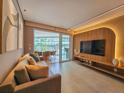 - 3 dormitórios, sendo 1 suíte - Sala com dois ambientes - Cozinha equipada - Banheiro social - Área de serviço - Varanda gourmet com churrasqueira e tela de proteção - Ambientes climatizados Diferenciais e Lazer do Condomínio: Piscina adulto com deck Piscina coberta aquecida com raia de 25 metros Piscina infantil Brinquedoteca Salão de Jogos Adulto Salão de Jogos Infantil Salão de Festas Churrasqueira com Espaço Gourmet Playground Jacuzzi - Spa com Hidromassagem Sauna Úmida e Seca com Sala de Repouso Academia Quadra de Tênis Área Verde/Jardim Bicicletário Sanitários Portaria Serviço de praia. À Disponibilidade e Valores dos Imóveis anunciados podem sofrer alterações a qualquer momento, sem aviso prévio.