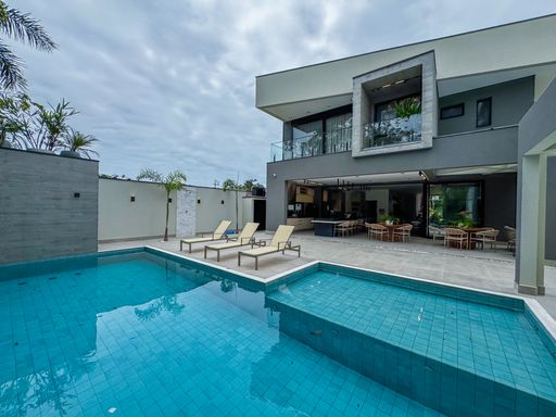 - 5 suítes, incluindo uma master com banheira - Living para dois ambientes - Mobiliado e decorado com móveis planejados SCA - Cozinha integrada com espaço gourmet - Churrasqueira com parrilheira - Acesso à piscina aquecida com borda infinita - Ar-condicionado em todos os ambientes - Sistema de automatização À Disponibilidade e Valores dos Imóveis anunciados podem sofrer alterações a qualquer momento, sem aviso prévio.