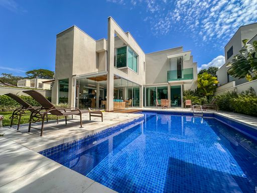 - 5 suítes, e 1 dormitório reversível - Living com dois ambientes - Cozinha conceito aberto - Sala de estar privativa - Dispensa - Lavabo - Área e dormitórios de serviço - Piscina climatizada - Área gourmet - Banheiro externo - Área verde na lateral, e nos fundos um amplo jardim - Depósito - Ambientes climatizados À Disponibilidade e Valores dos Imóveis anunciados podem sofrer alterações a qualquer momento, sem aviso prévio.