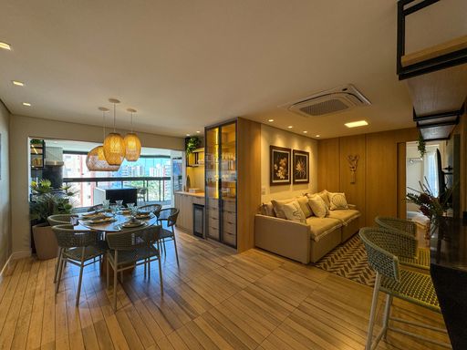 - 3 dormitórios, sendo 2 suítes - Living com dois ambientes - Cozinha americana equipada - Banheiro social - Varanda gourmet com churrasqueira e fechamento em vidros - Área de serviço - Ambientes climatizados - Vista parcial para o mar Diferenciais e Lazer do Condomínio: * Academia * Brinquedoteca * Churrasqueira * Espaço Gourmet * Piscina * Piscina climatizada * Piscina infantil * Sala fitness * Salão de festas * Salão de jogos * Sauna Seca * Sauna úmida À Disponibilidade e Valores dos Imóveis anunciados podem sofrer alterações a qualquer momento, sem aviso prévio.