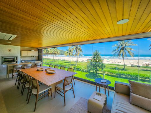 - 4 suítes - Dependência de serviço - Living com dois ambientes - Cozinha americana - Lavabo - Área de serviço - Varanda gourmet com churrasqueira - Vista para o mar - Fechamento em vidros - Ambientes climatizados Diferenciais e Lazer do Condomínio: Hall Social e serviço Piscina Adulto Aquecida com deck Piscina infantil Brinquedoteca Salão de Jogos Adulto Salão de Jogos Infantil Salão de Festas Churrasqueira com Espaço Gourmet Sauna Úmida e Seca com Sala de Repouso Academia Quadra de Tênis Área Verde/Jardim Bicicletário Deposito Individual na Garagem Sanitários Portaria Serviço de praia. À Disponibilidade e Valores dos Imóveis anunciados podem sofrer alterações a qualquer momento, sem aviso prévio.