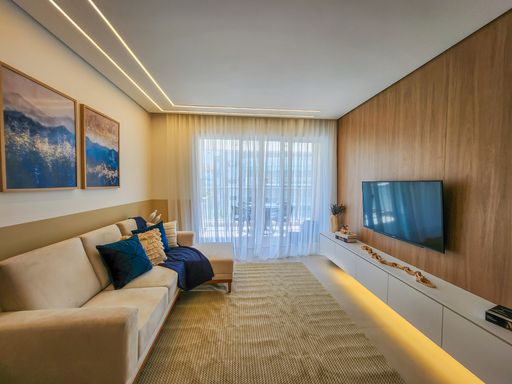 - 3 dormitórios, sendo 1 suíte - Sala de estar e jantar integradas - Cozinha americana - Banheiro social - Área de serviço - Varanda gourmet com churrasqueira e com fechamento em vidros - Ar-condicionado nos quartos Diferenciais e Lazer do Condomínio: Piscina adulto com deck Piscina coberta aquecida com raia de 25 metros Piscina infantil Brinquedoteca Salão de Jogos Adulto Salão de Jogos Infantil Salão de Festas Churrasqueira com Espaço Gourmet Playground Jacuzzi - Spa com Hidromassagem Sauna Úmida e Seca com Sala de Repouso Academia Quadra de Tênis Área Verde/Jardim Bicicletário Sanitários Portaria Serviço de praia. À Disponibilidade e Valores dos Imóveis anunciados podem sofrer alterações a qualquer momento, sem aviso prévio.