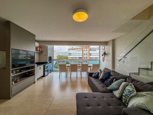 - 04 dormitórios, sendo 02 suítes - Living com dois ambientes - Sala de jantar - Cozinha totalmente equipada - Lavabo - Banheiro social - Varanda com fechamento em vidros e área de descanso - Espaço gourmet com piscina e equipada com churrasqueira e cervejeira - Área de serviço - Ambientes climatizados À Disponibilidade e Valores dos Imóveis anunciados podem sofrer alterações a qualquer momento, sem aviso prévio.