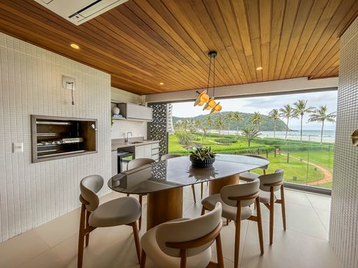 - 4 suítes - Sala integrada com cozinha equipada e varanda gourmet - Banheiro social - Lavanderia com lavabo - Varanda gourmet com churrasqueira - Fechamento em vidro - Ambientes climatizados - Vista para o mar - Pé na areia Diferenciais do Condomínio: Piscinas adulto e infantil com borda infinita Solarium e acesso direto à praia Playground e kids place Salão de festas e espaço gourmet externo Sala de jogos Sala de descanso com saunas seca e úmida Vestiários para piscina Área fitness e quadra recreativa Hall social elegante Garagem com acessos pelo térreo e subsolo Portaria com controle de entrada e saída À Disponibilidade e Valores dos Imóveis anunciados podem sofrer alterações a qualquer momento, sem aviso prévio.