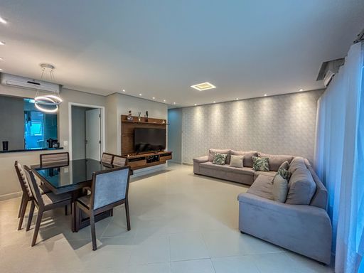 -Apartamento amplo em prédio novo -3 suítes -Cozinha americana integrada ao living com 2 ambientes -Lavabo -Todos os ambientes mobiliados -Ampla varanda gourmet com chopeira -Ar condicionado em todos os ambientes -Fechamento em vidros na varanda Diferenciais e Lazer do Condomínio: Portaria 24 horas Salão de Festas Salão de Jogos Sauna seca Brinquedoteca Piscina Adulto Piscina Infantil Academia Churrasqueira Serviço de Praia Área verde e jardim. À Disponibilidade e Valores dos Imóveis anunciados podem sofrer alterações a qualquer momento, sem aviso prévio.