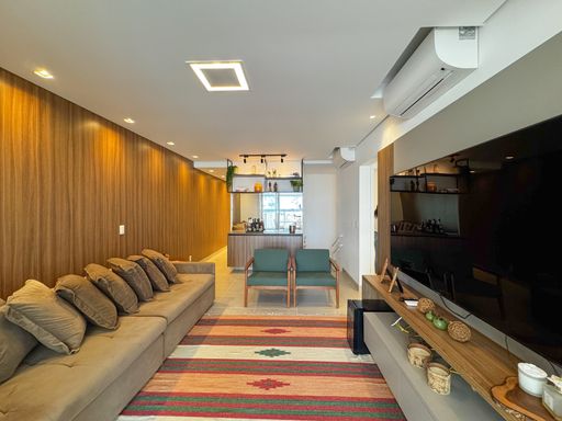 - 3 dormitórios, sendo 1 suíte - Sala de estar e jantar integradas - Cozinha americana equipada - Banheiro social - Área de serviço - Varanda gourmet com churrasqueira - Fechamento em vidro e tela de proteção - Ar-condicionado nos ambientes Diferenciais e Lazer do Condomínio: Piscina adulto com deck Solarium com espreguiçadeiras Piscina infantil Piscina coberta Brinquedoteca Salão de Jogos e TV Salão de Festas Sauna com Sala de Repouso Academia Área Verde/Jardim Sanitários Portaria Serviço de praia. À Disponibilidade e Valores dos Imóveis anunciados podem sofrer alterações a qualquer momento, sem aviso prévio.