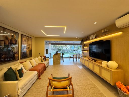 - 6 suítes, todas equipadas com ar-condicionado - Cozinha totalmente equipada - Área gourmet com churrasqueira - Área externa com: - Piscina - Sauna - Acesso exclusivo à área verde privativa À Disponibilidade e Valores dos Imóveis anunciados podem sofrer alterações a qualquer momento, sem aviso prévio.