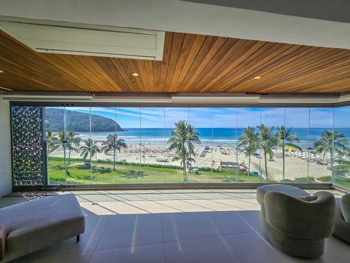 - 4 suítes - Living com dois ambientes - Cozinha equipada, integrada a varanda gourmet - Banheiro social - Dormitório de serviço - Ampla Varanda gourmet integrada a sala de estar, com vista para o mar - Varanda com fechamento em vidros - Ambientes climatizados - 3 vagas de garagem Diferenciais do Condomínio: Piscinas adulto e infantil com borda infinita Solarium e acesso direto à praia Playground e kids place Salão de festas e espaço gourmet externo Sala de jogos Sala de descanso com saunas seca e úmida Vestiários para piscina Área fitness e quadra recreativa Hall social elegante Garagem com acessos pelo térreo e subsolo Portaria com controle de entrada e saída À Disponibilidade e Valores dos Imóveis anunciados podem sofrer alterações a qualquer momento, sem aviso prévio.