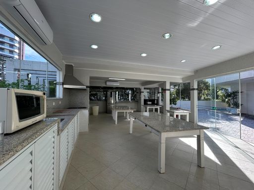 - Varanda gourmet equipada com churrasqueira e fechamento em vidros