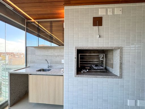 -Varanda equipada com churrasqueira e totalmente envidraçada
