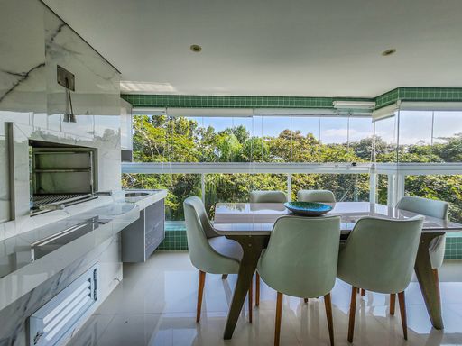 - Varanda com churrasqueira e fechamento em vidro