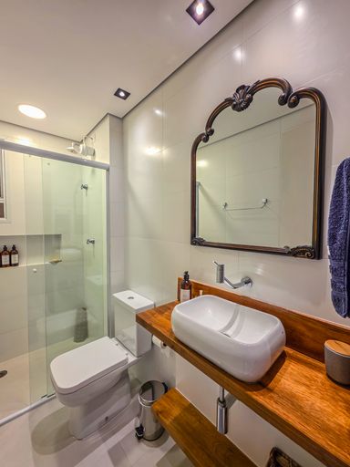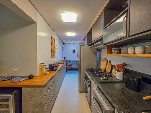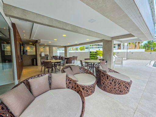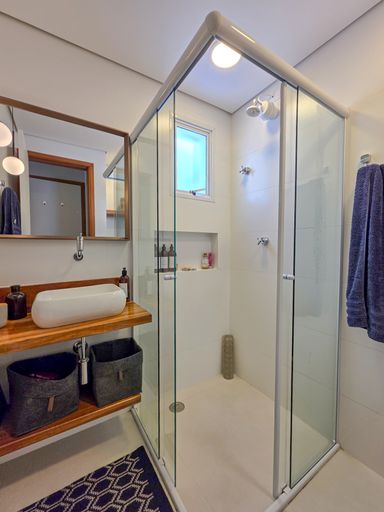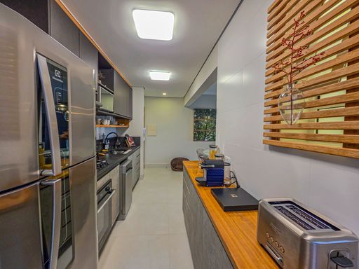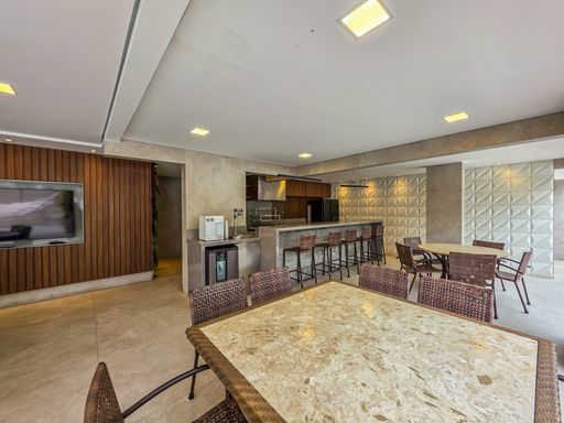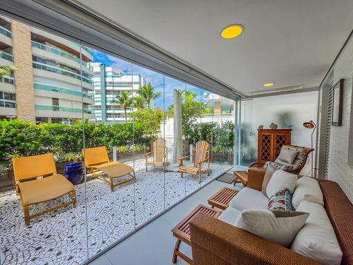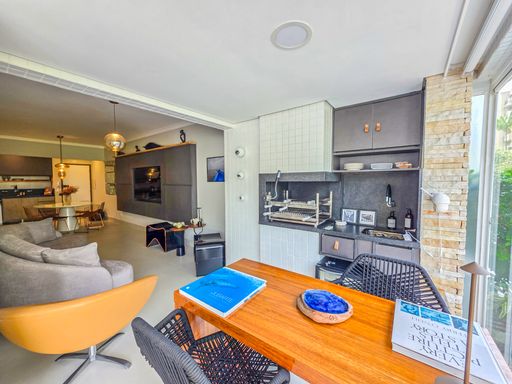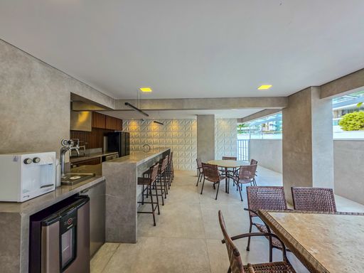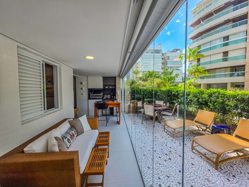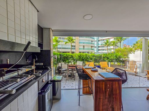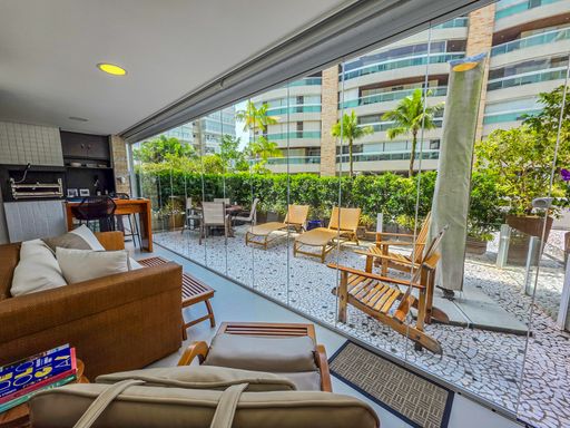 - Varanda gourmet equipada com churrasqueira e fechamento em vidros