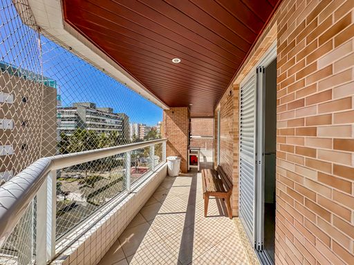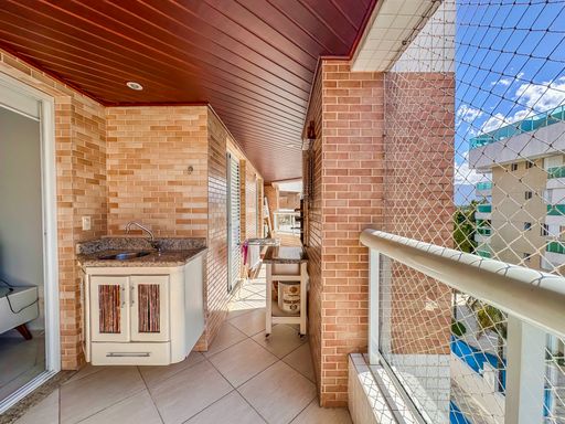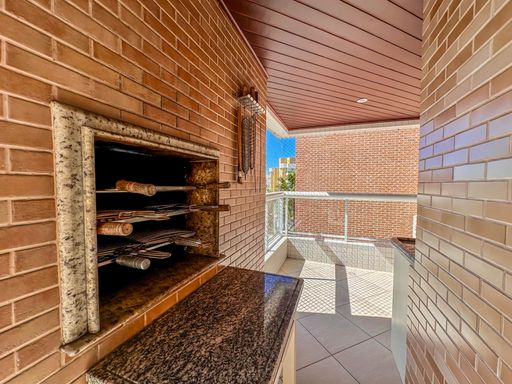 - Varanda gourmet equipada com churrasqueira e fechamento em tela de proteção