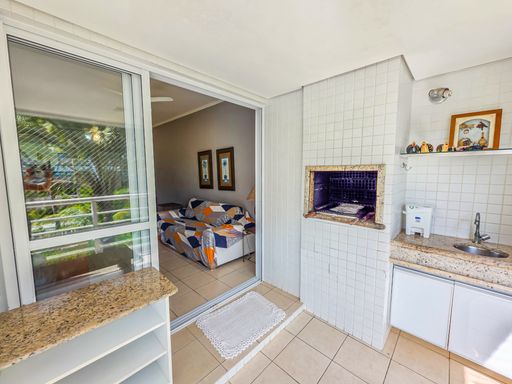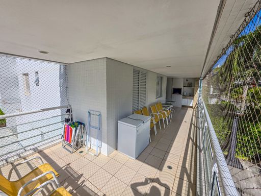 - Varanda gourmet equipada com churrasqueira e fechamento em tela de proteção