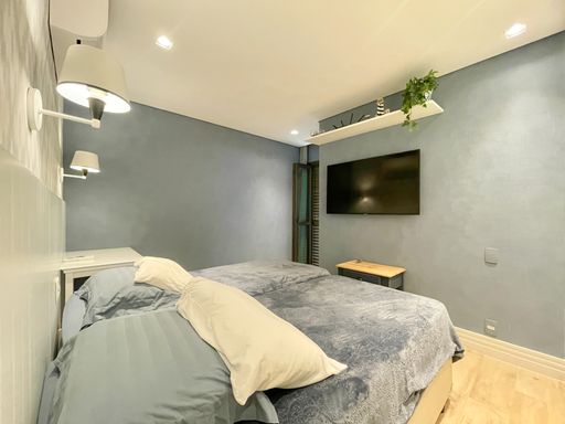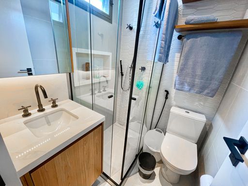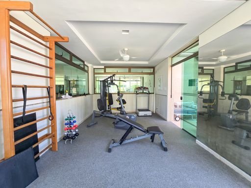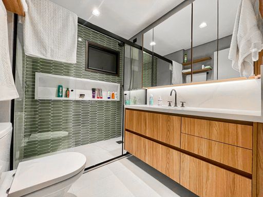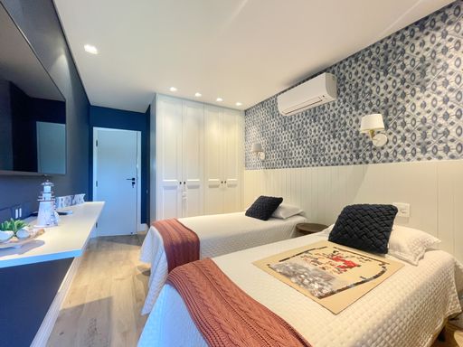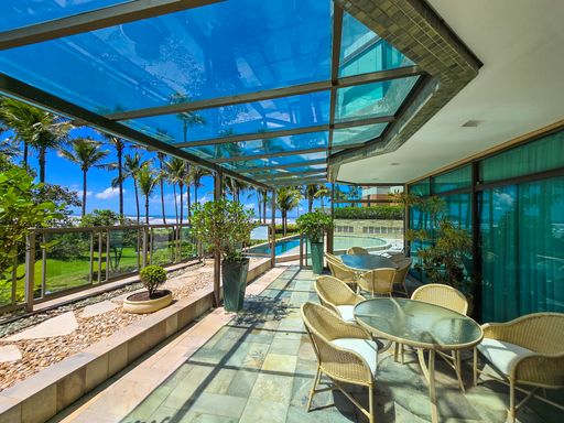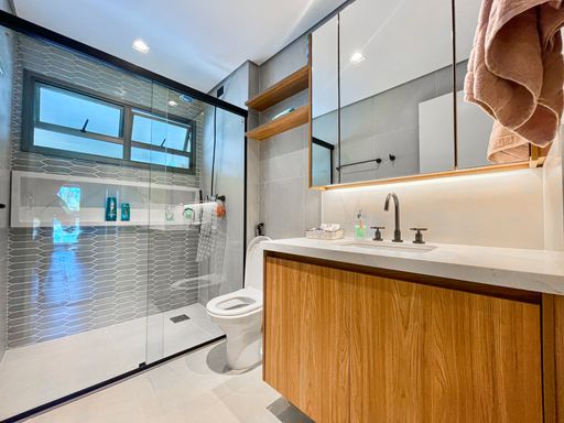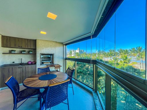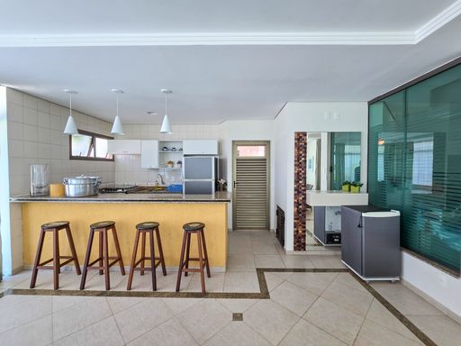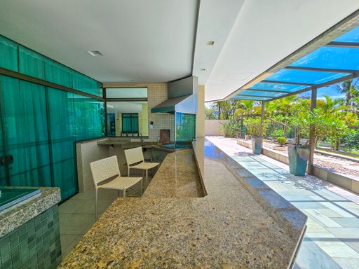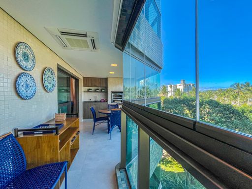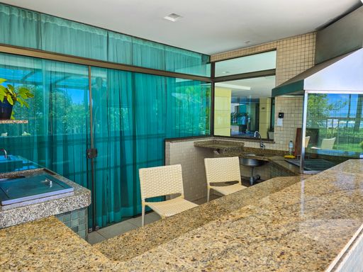 - Varanda gourmet com churrasqueira, climatizada e fechamento em vidros