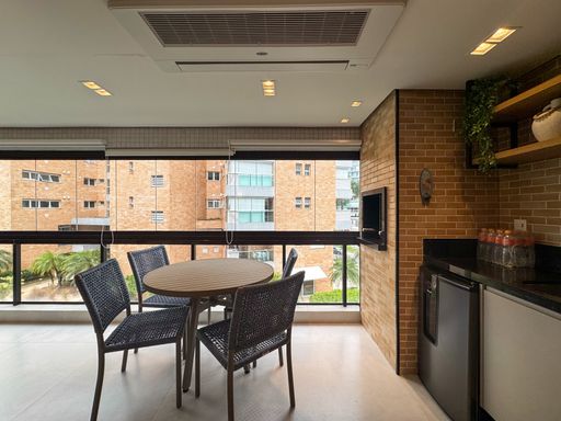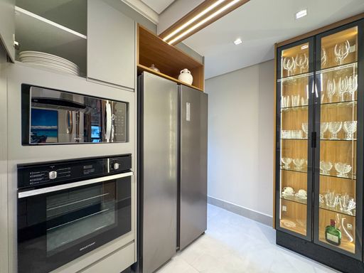 - Varanda gourmet equipada com churrasqueira e com fechamento em vidros