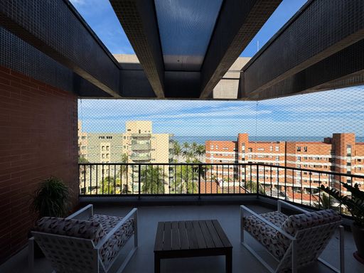 - Sala de TV integrada ao espaço gourmet com varanda e vista para o mar