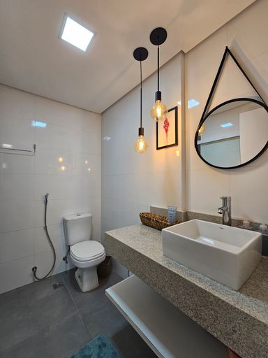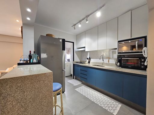 - Varanda gourmet equipada com churrasqueira e fechamento em vidros