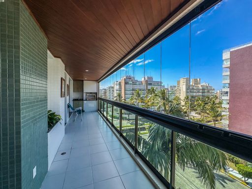 - Varanda gourmet equipada com churrasqueira e fechamento em vidro