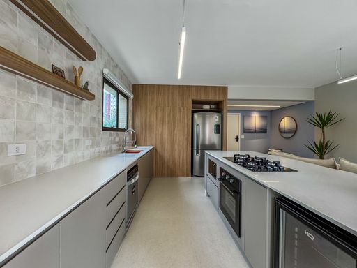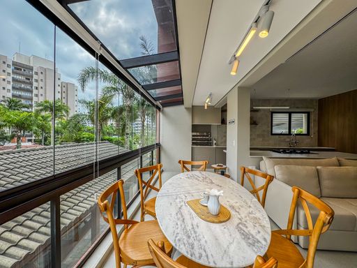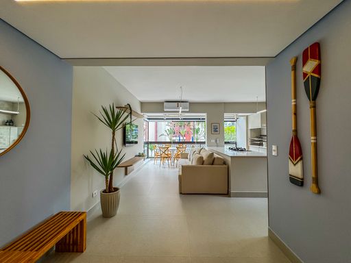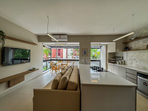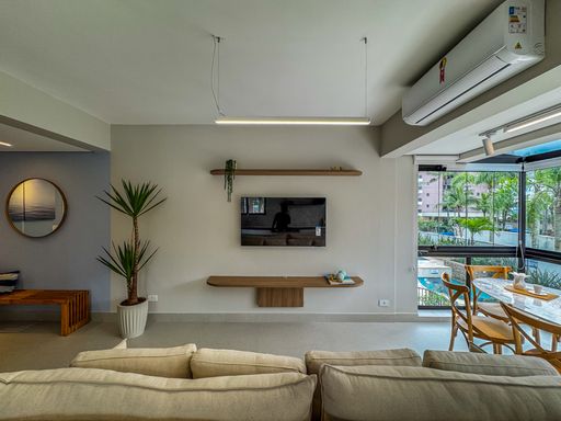 - Living amplo e climatizado, integrado à cozinha e à varanda
