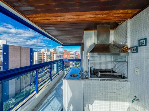 - Varanda gourmet equipada com churrasqueira, e com fechamento em vidros