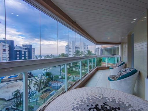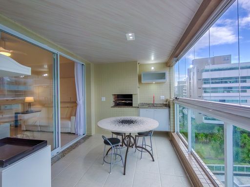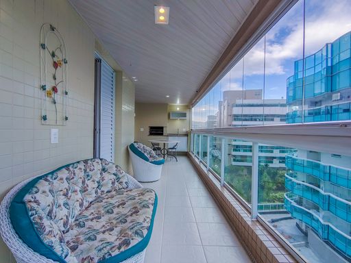 - Varanda gourmet equipada com churrasqueira e fechamento em vidros