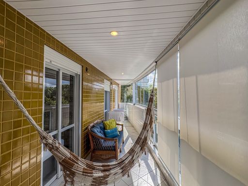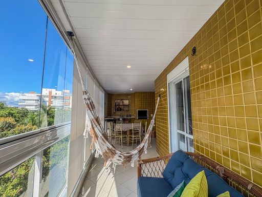 - Varanda gourmet equipada com churrasqueira e fechamento em vidros