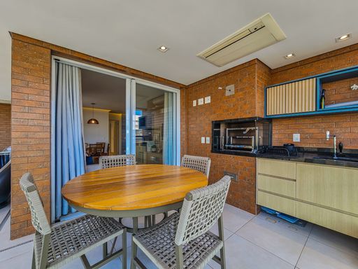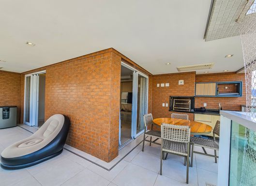 - Varanda gourmet equipada com churrasqueira, e com fechamento em tela de proteção