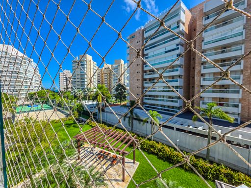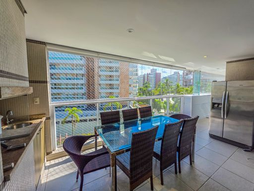 - Varanda gourmet equipada com churrasqueira, fechamento em vidro e tela de proteção