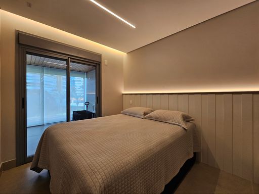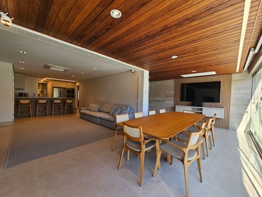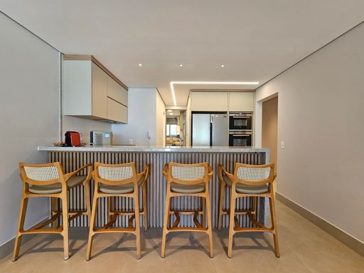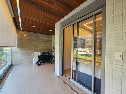 - Varanda gourmet equipada com churrasqueira, fechamento em vidros e persianas