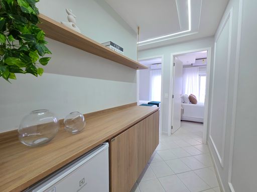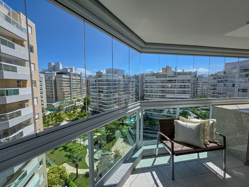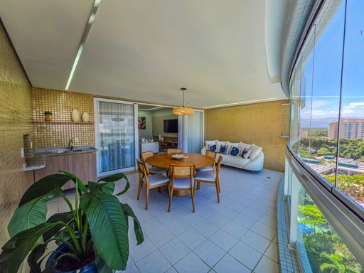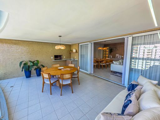 - Varanda gourmet equipada com churrasqueira e fechamento em vidros