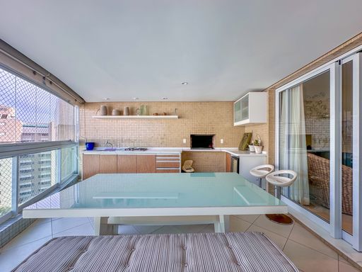 - Varanda gourmet equipada com churrasqueira e fechamento em vidros e tala de proteção