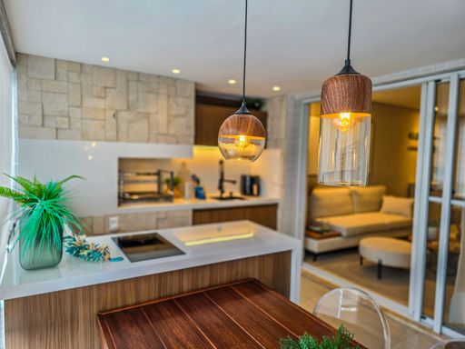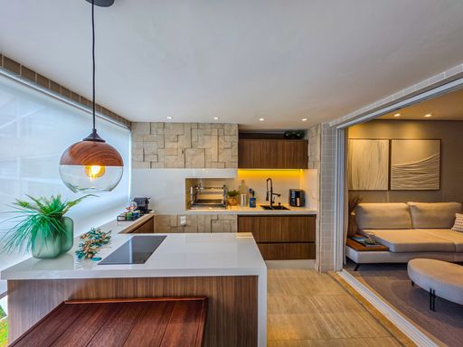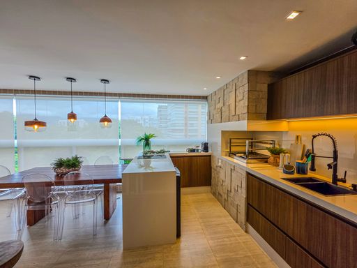 - Varanda gourmet equipada com churrasqueira e com fechamento em vidros
