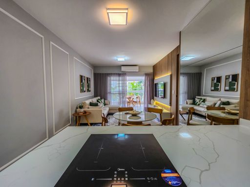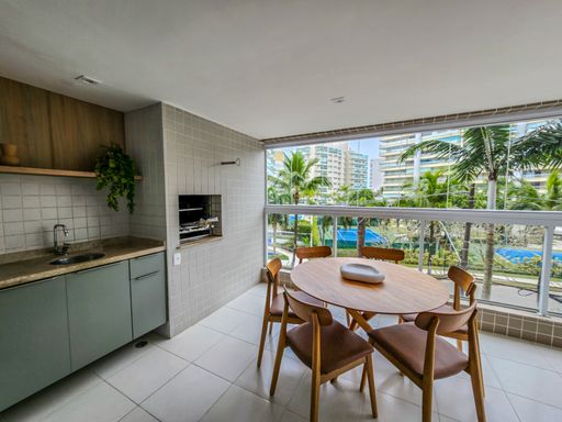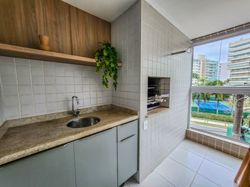 - Varanda gourmet com churrasqueira e fechamento em vidro