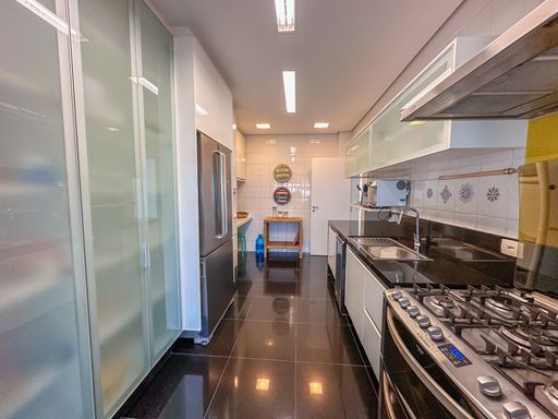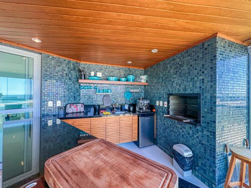 - Varanda gourmet equipada com churrasqueira e fechamento em vidros