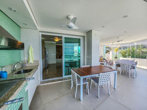 - Amplo espaço gourmet com churrasqueira e fechamento em vidros