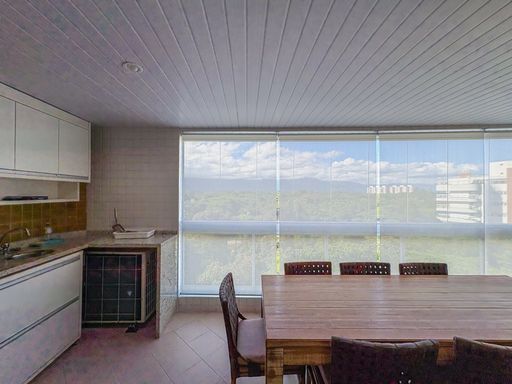 - Varanda gourmet equipada com churrasqueira e fechamento em vidros