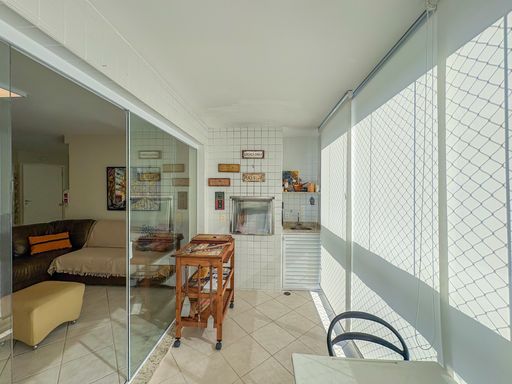 - Varanda gourmet com churrasqueira e fechamento em vidro