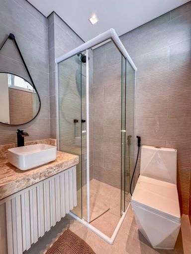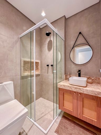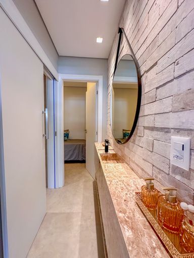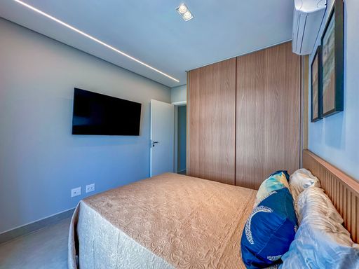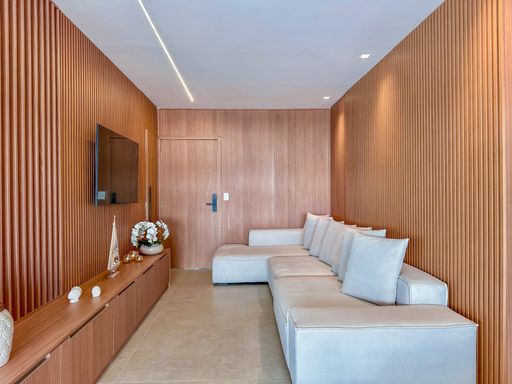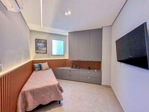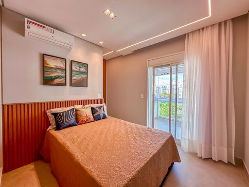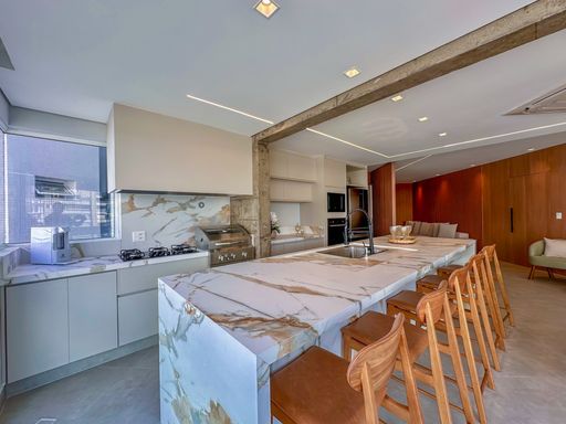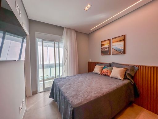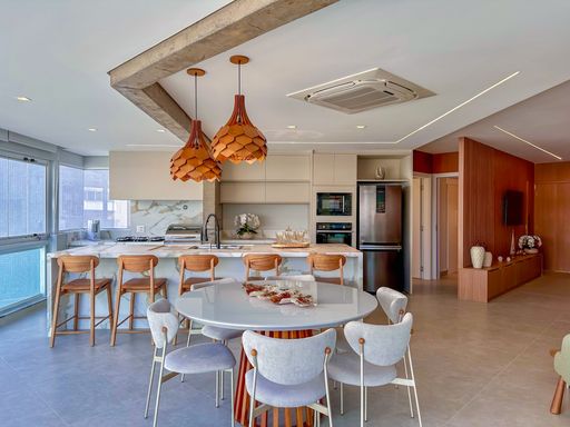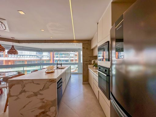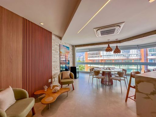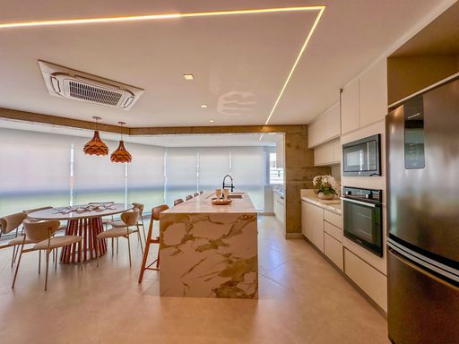 - Varanda gourmet integrada ao living, equipada com churrasqueira e fechamento em vidros