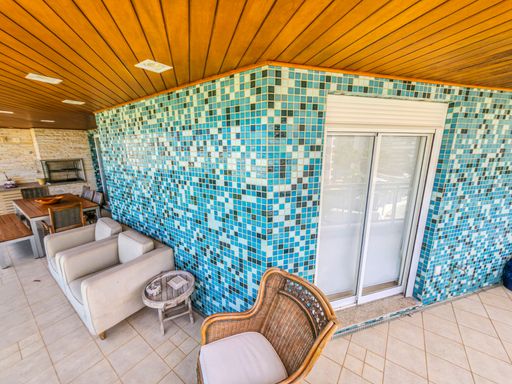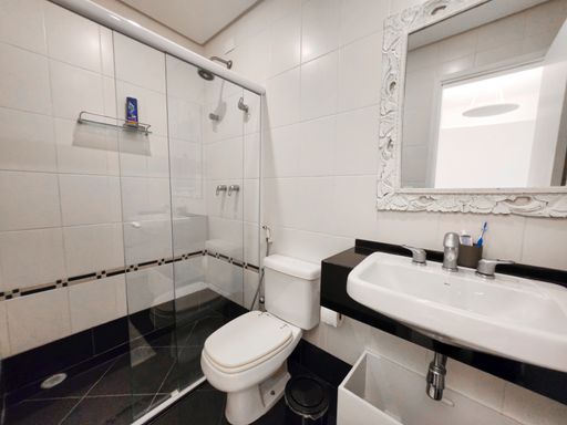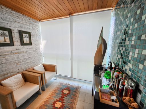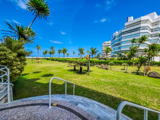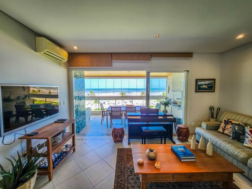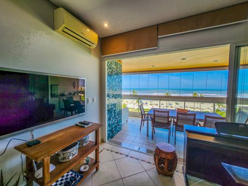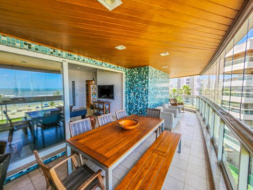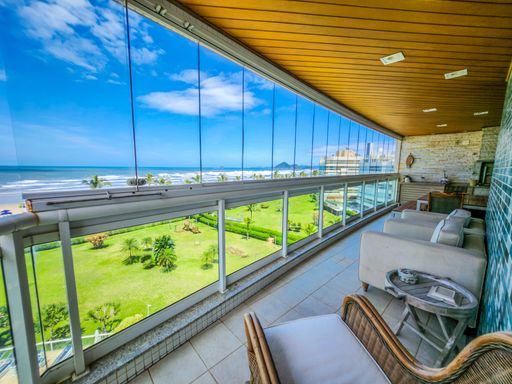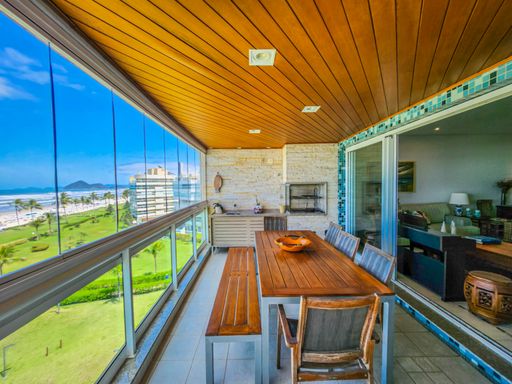 - Varanda com churrasqueira e fechamento em vidro e vista para o mar