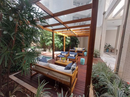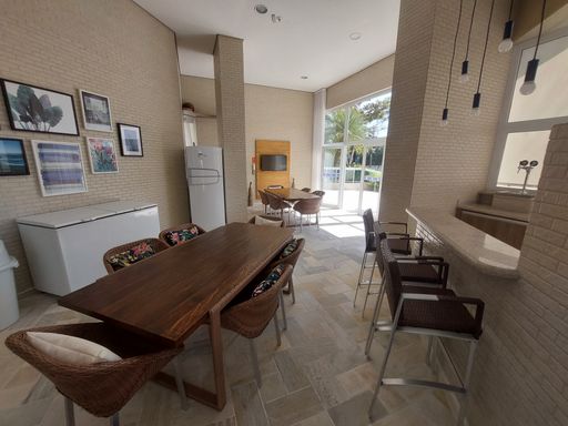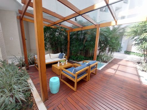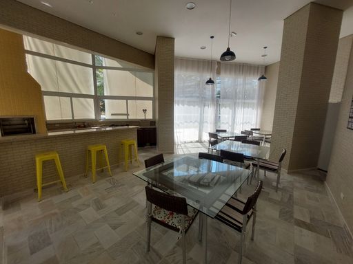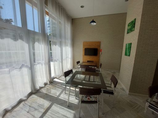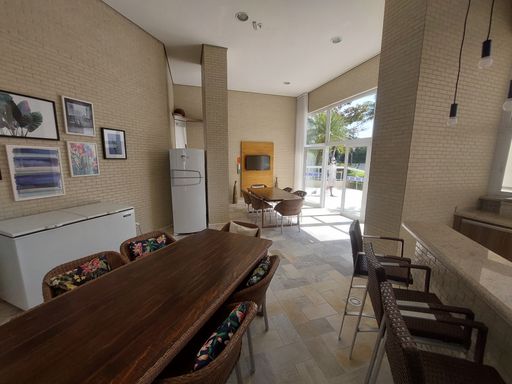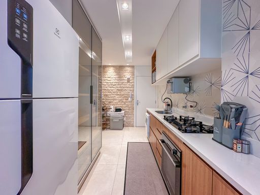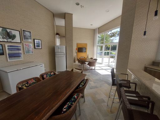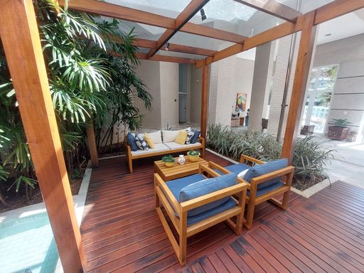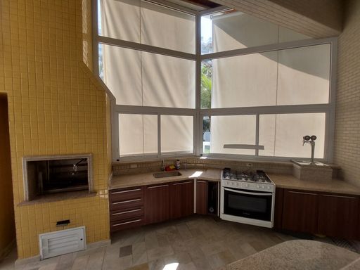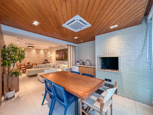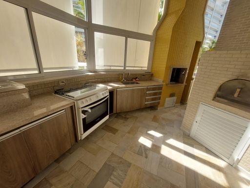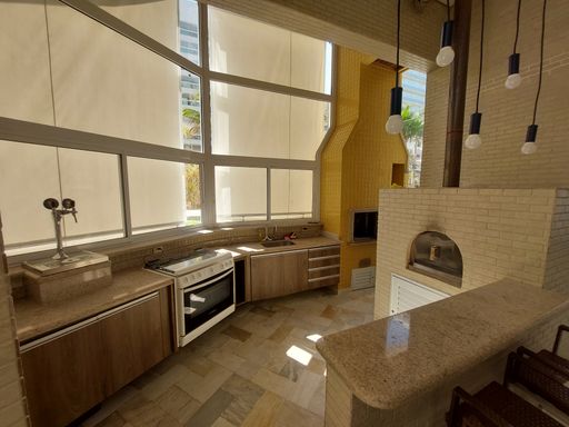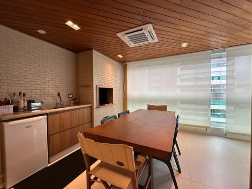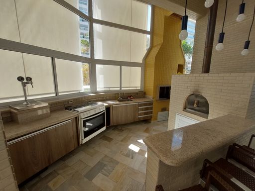 - Varanda gourmet equipada com churrasqueira e fechamento em vidro