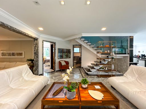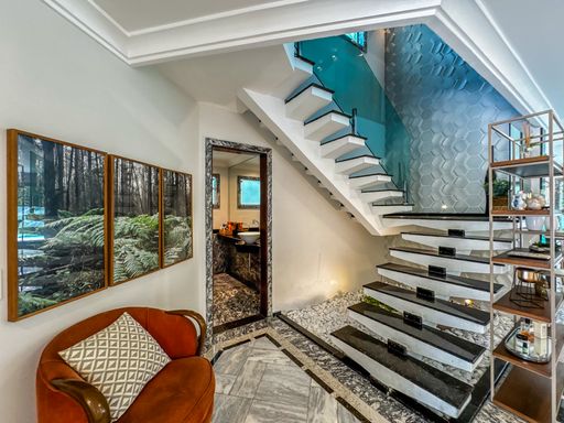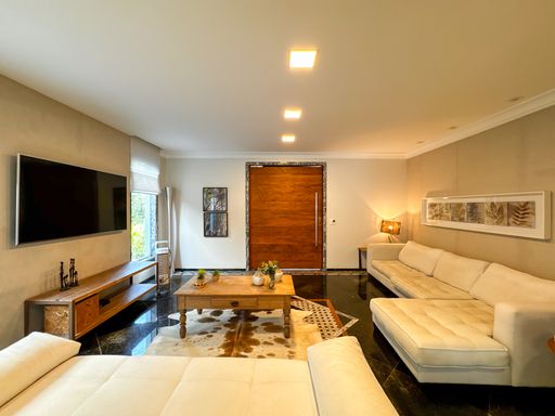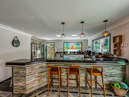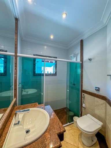 - 5 suítes: sendo 1 suíte master com hidromassagem e 1 suíte no térreo.