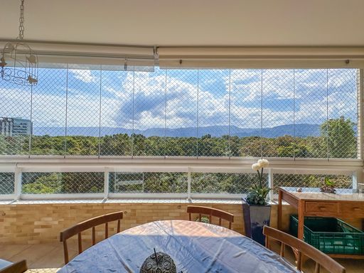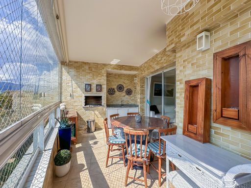 - Varanda gourmet equipada com churrasqueira e fechamento em vidro e tela de proteção