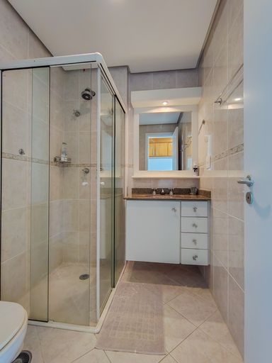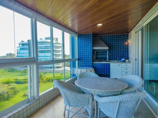 - Varanda gourmet equipada com churrasqueira e fechamento em vidros