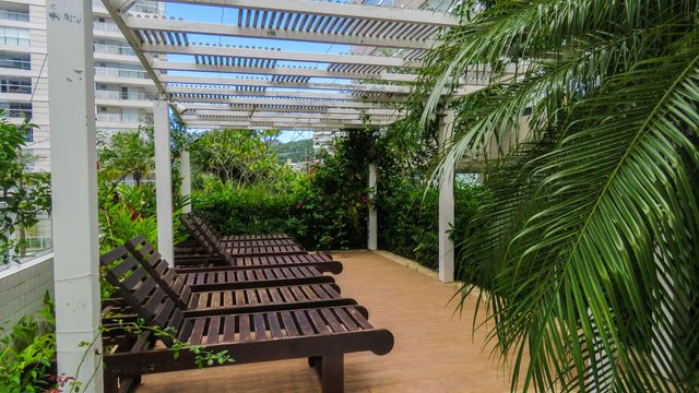 Área de solarium com cadeiras e espreguiçadeiras
